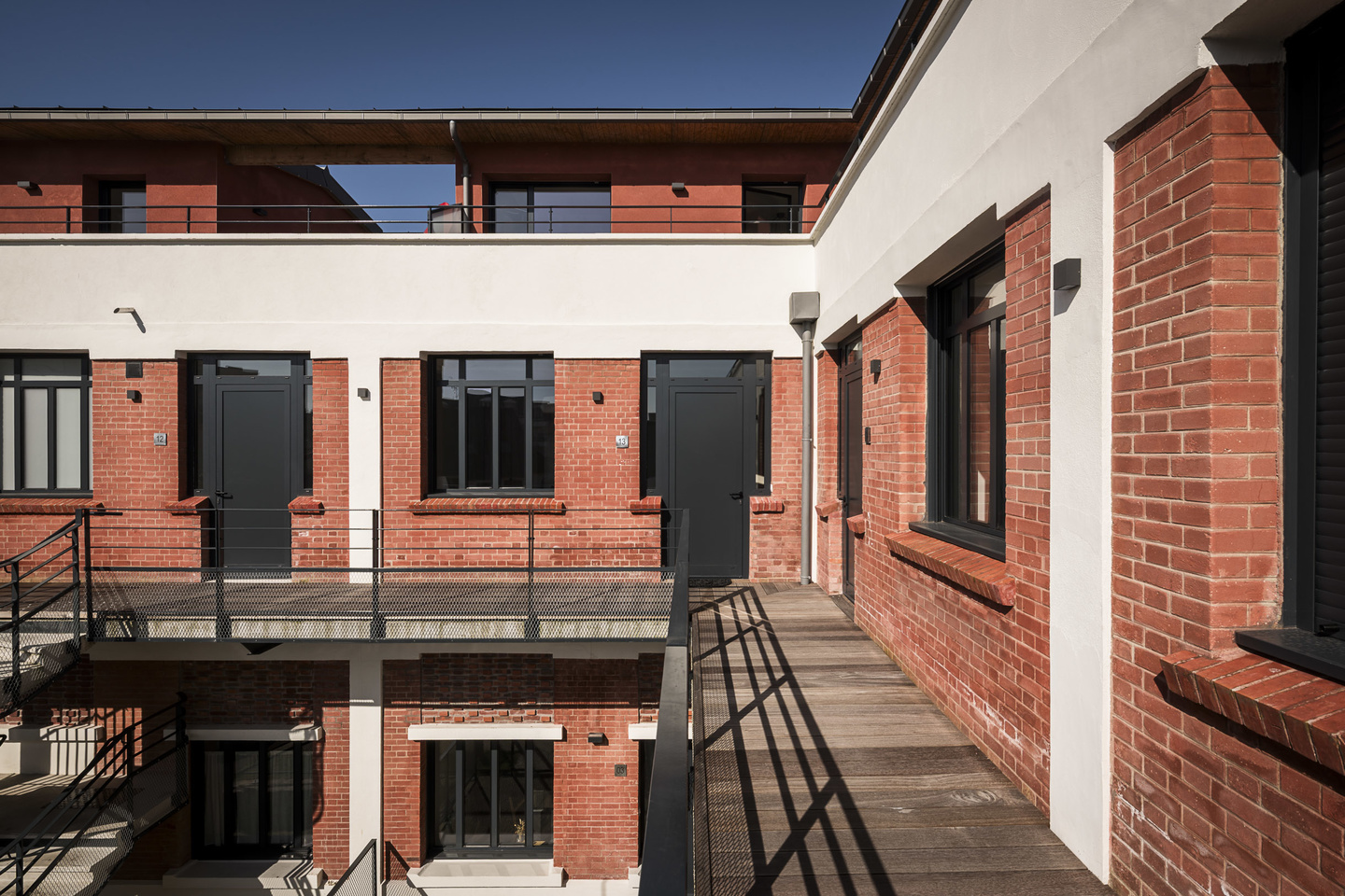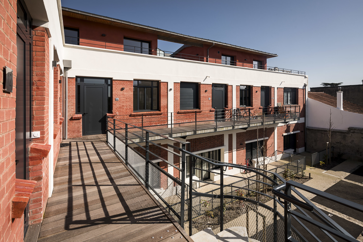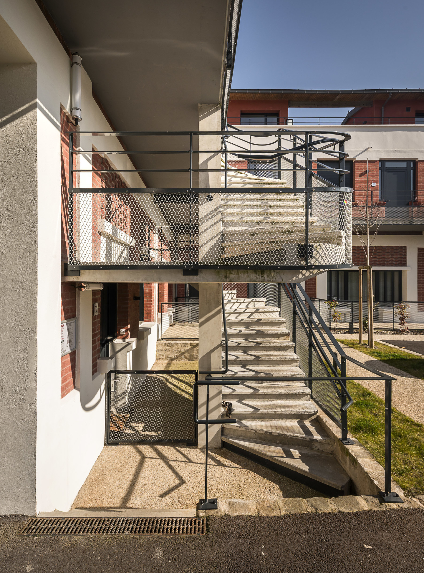 Il est prévu des aménagements paysagers sur la cour intérieure, qui devient ainsi un espace d'échange entre les habitants. A l’étage, les logements seront desservis par un escalier extérieur donnant accès à une coursive le long des deux façades.